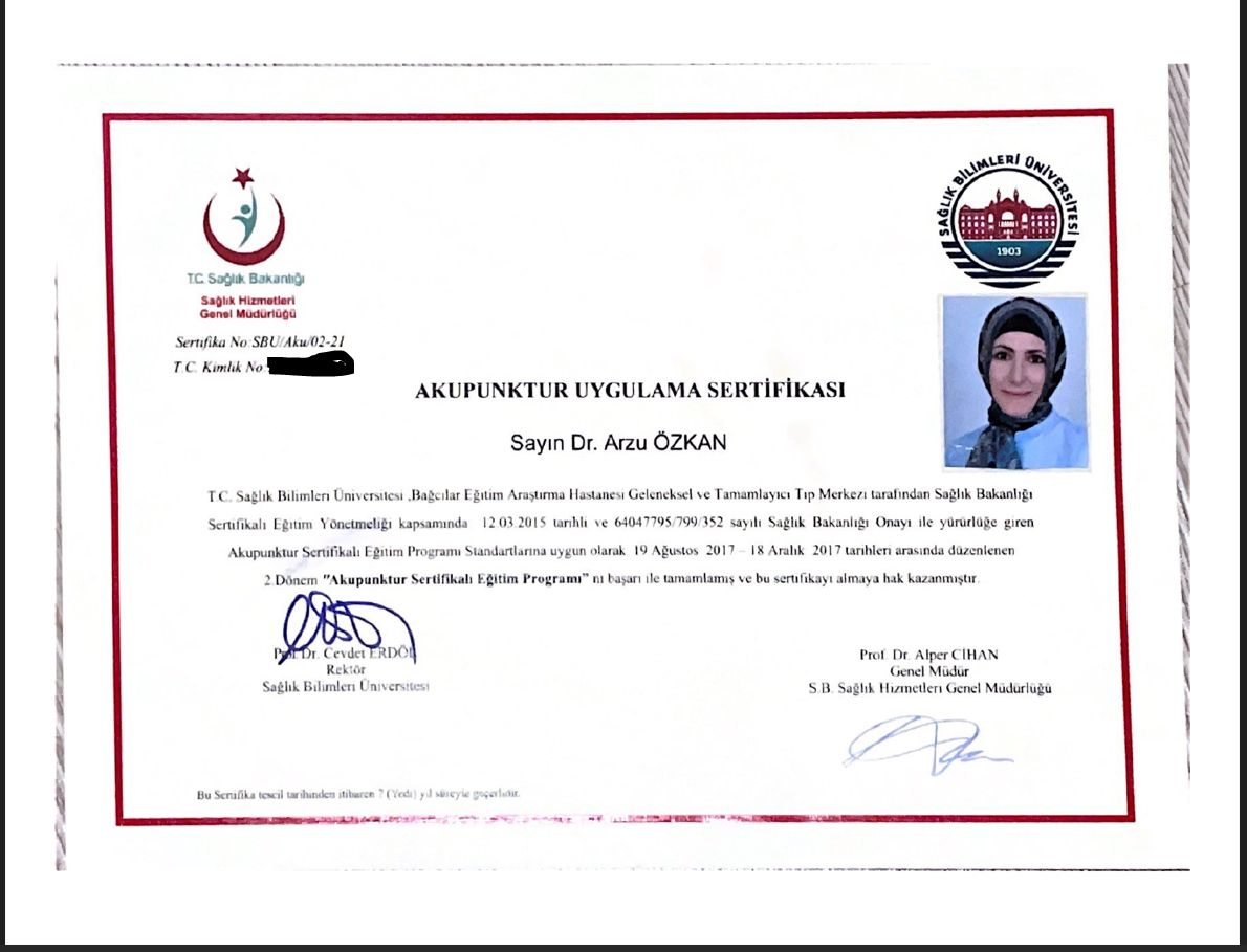 Dr. Arzu Özkan, Maltepe Üniversitesi Tıp Fakültesi mezunudur. Mezuniyetinin ardından çeşitli alanlarda mesleki tecrübeler edinmiş ve özellikle tamamlayıcı tıp yöntemlerine ilgi duyarak bu alanda çalışmalarını yoğunlaştırmıştır. Başlıca çalışma alanı akupunktur olan Dr. Özkan, bu konuda edindiği bilgi ve deneyimle birçok hastaya destek olmaktadır. Halen kendi muayenehanesinde hasta kabul etmeye devam eden Dr. Arzu Özkan, tıbbi bilgi birikimi ile bütüncül bir bakış açısını birleştirerek kişiye özel tedavi yaklaşımları sunmaktadır.